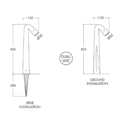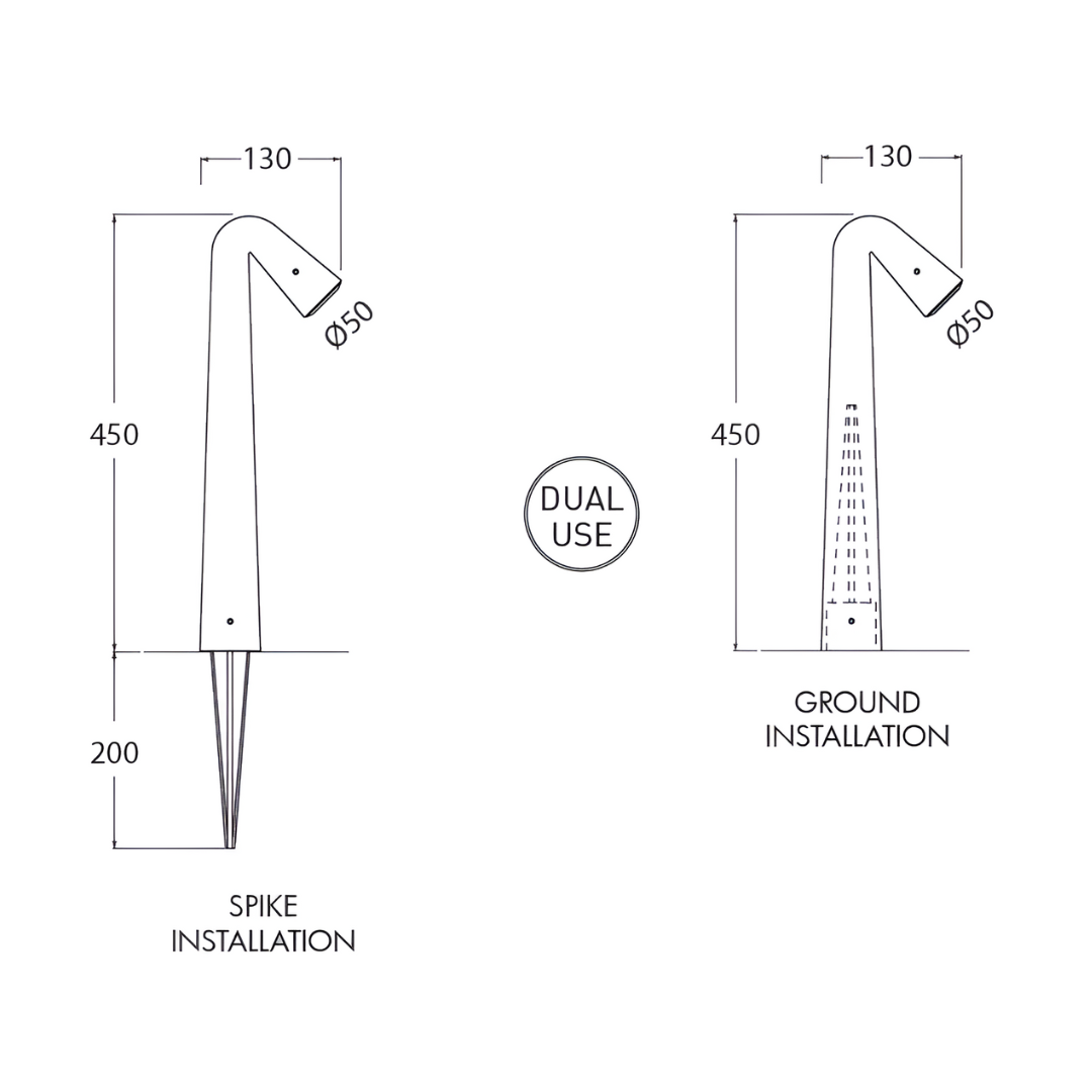 - Dimensiones: 50mm de diámetro, 130mm x 450 de alto, estaca de 200mm de largo.