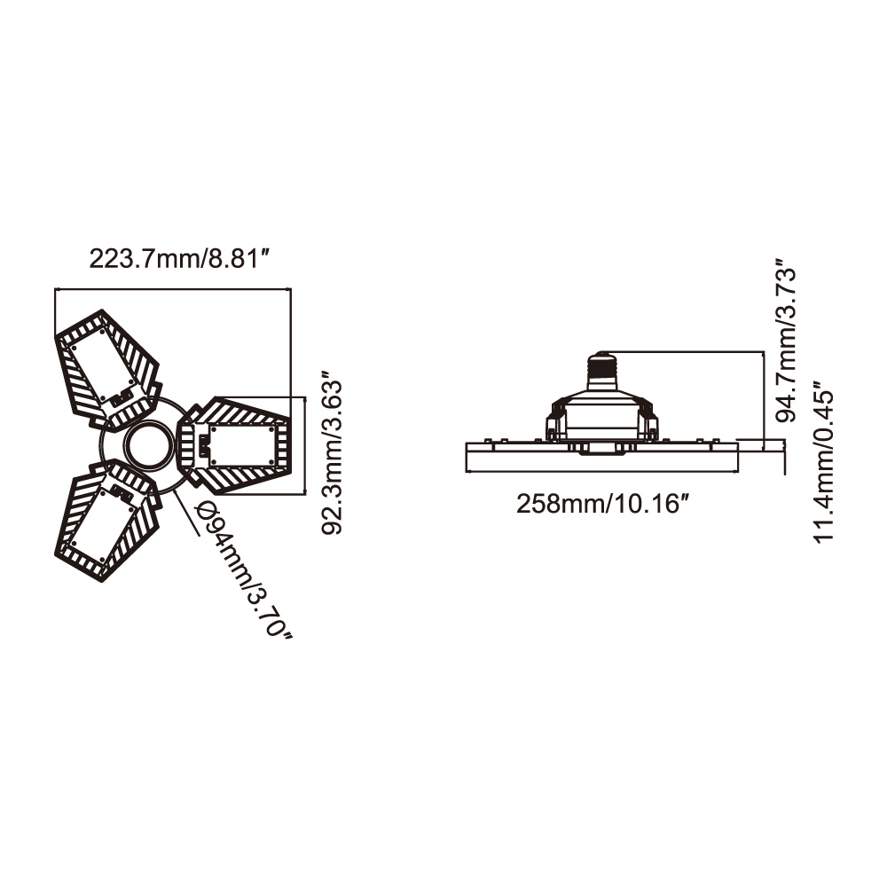 - Dimensiones del producto: 94.7 x 223.7 x 223.7 mm