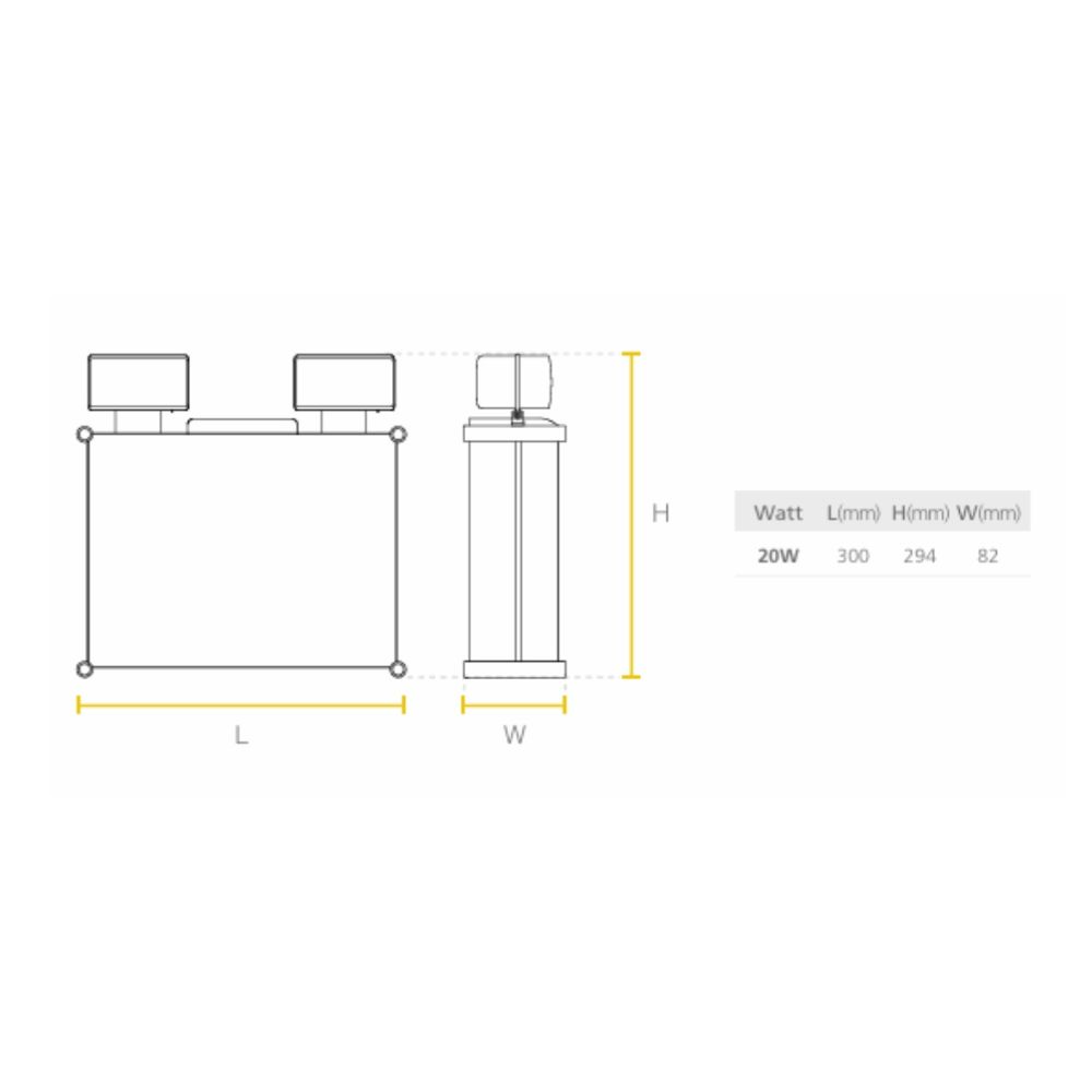 - 2 LEDs brillantes de 10W cada uno, 6000K