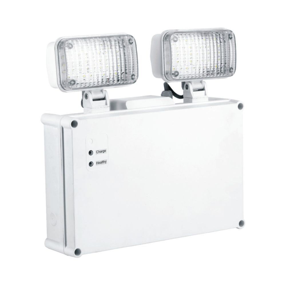 Luminario de emergencia de uso rudo, su diseño lo convierte en una excelente opción para la iluminación de emergencia en la industria en espacios como bodegas, áreas de producción o superficies de gran tamaño. Cuerpo construido en policarbonato, con dos spots dirigibles de alta salida (10W cada uno), para la adecuada señalización de rutas de evacuación y/o salidas de emergencia. Cuenta con botón de prueba y con una batería de Li-ion 22.2 V / 2000mAH (Ion Litio), con tiempo de carga de 24 horas y 180 minutos de respaldo.