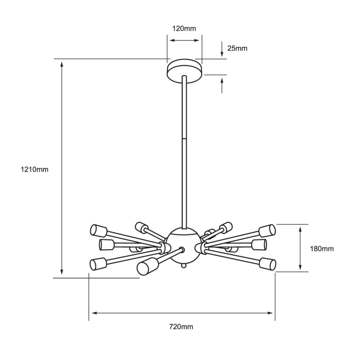 - Dimensiones del producto: 1210 x 720 x 720 mm