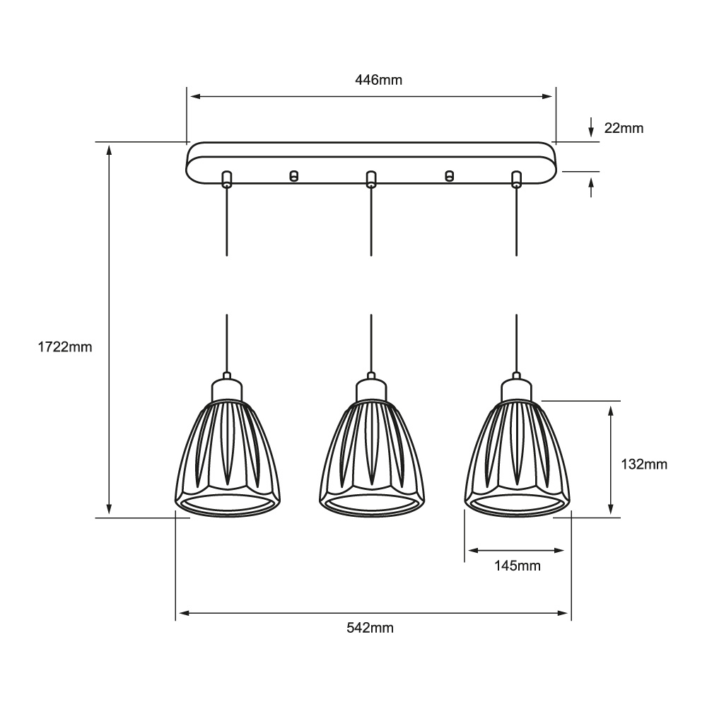 - Dimensiones del producto: 1722 x 145 x 542 mm