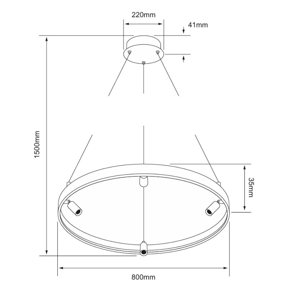 - Potencia: 42W Totales (32W por el aro, 2.5W por cada spot)