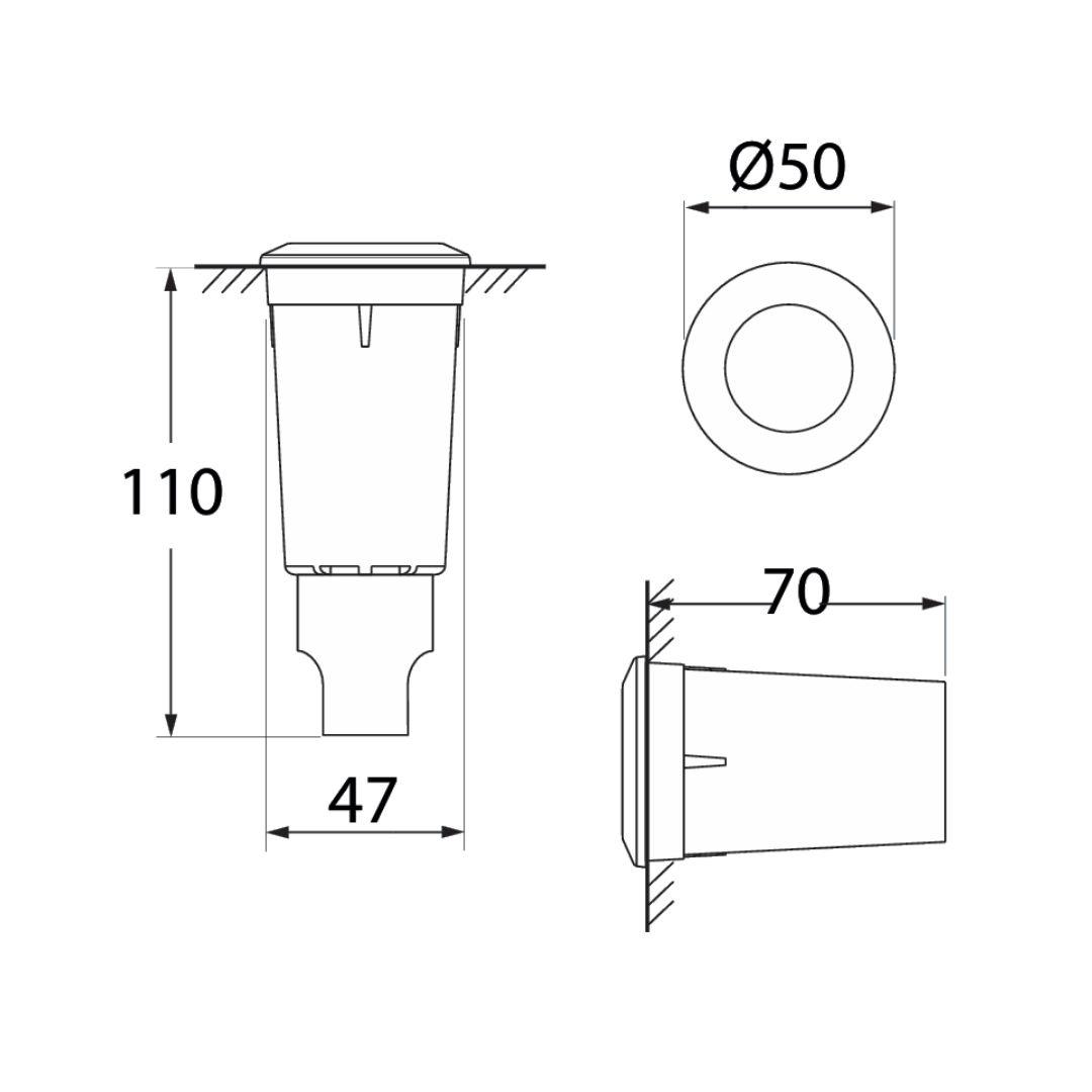 - Dimensiones: Ø50mm x 110mm de profundidad.