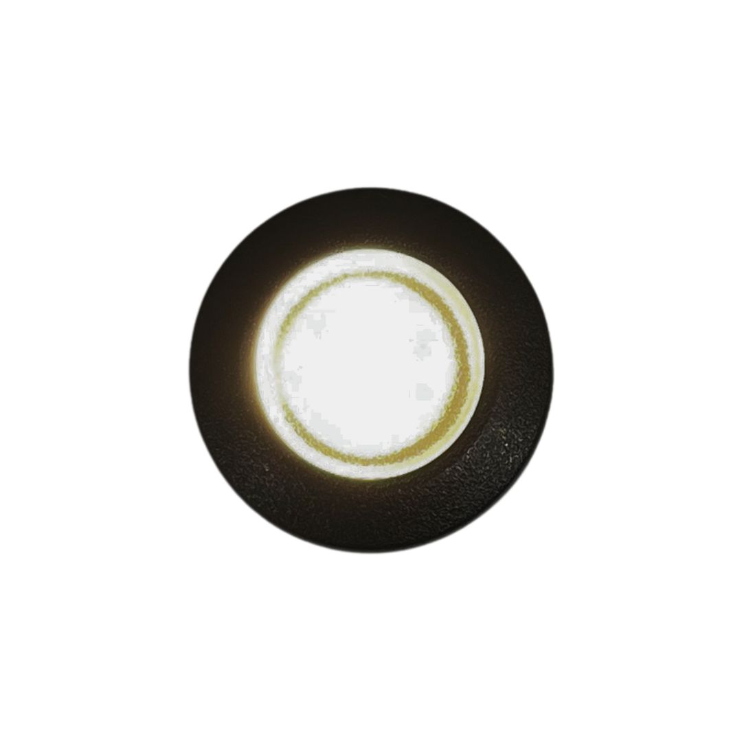 Aplique circular para pared y/o piso en exteriores, sin tornillos visibles, fabricado de resina resistente a golpes, estabilizado contra los rayos UV, resistente al óxido y a la corrosión.