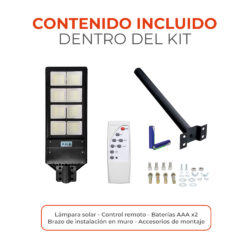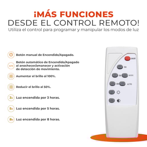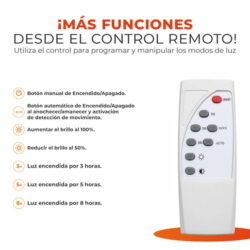 - Incluye control remoto con baterías y accesorios de instalación
