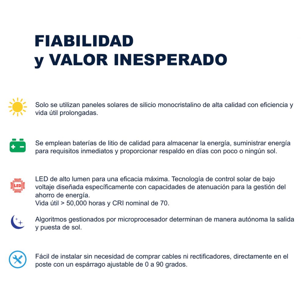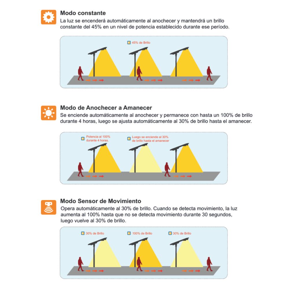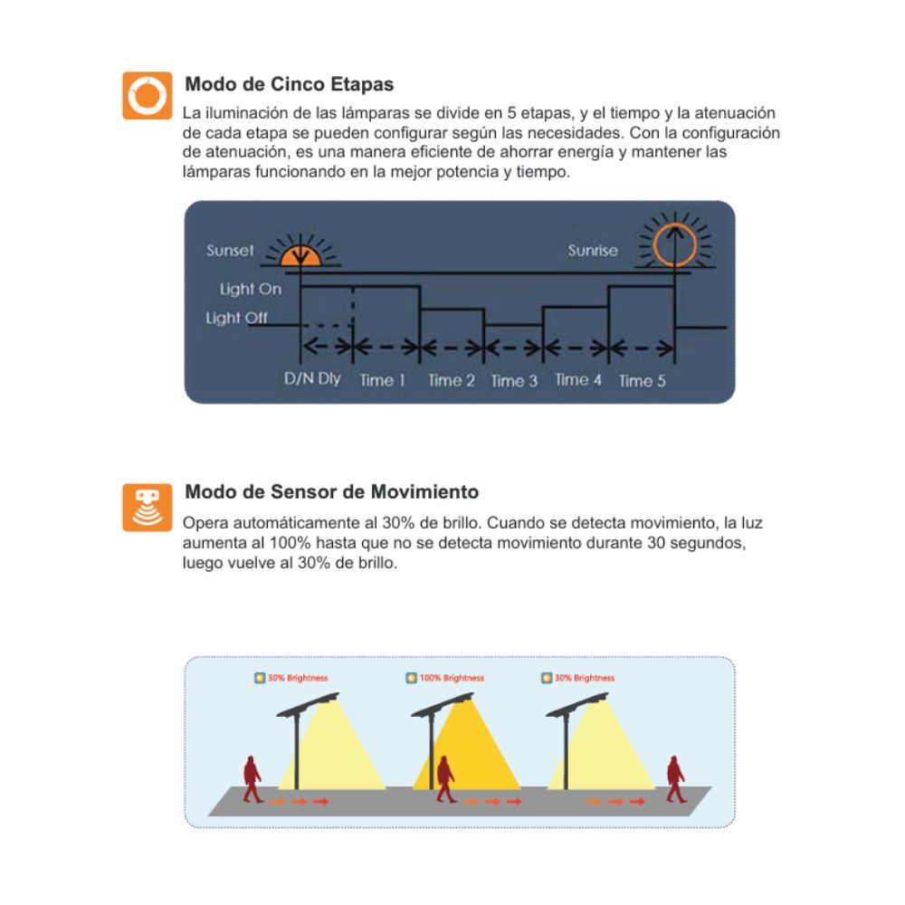 Luminaria solar tipo cobra LED para alumbrado de calles, con sensor de movimiento.