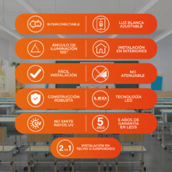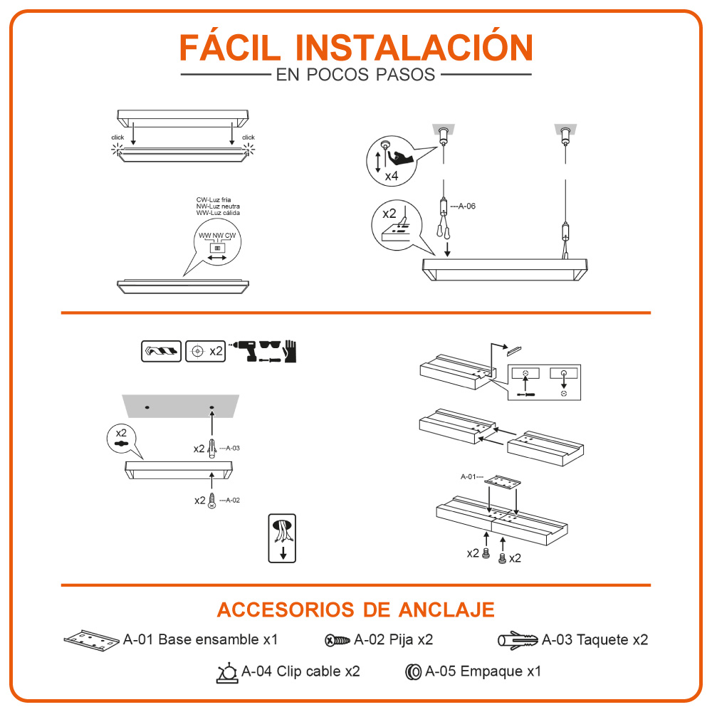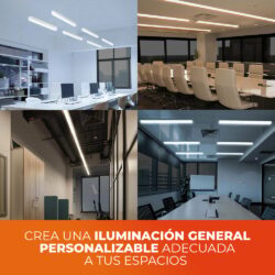 Suspendido o Empotrado en techo en interiores, ideal en oficinas y espacios productivos.