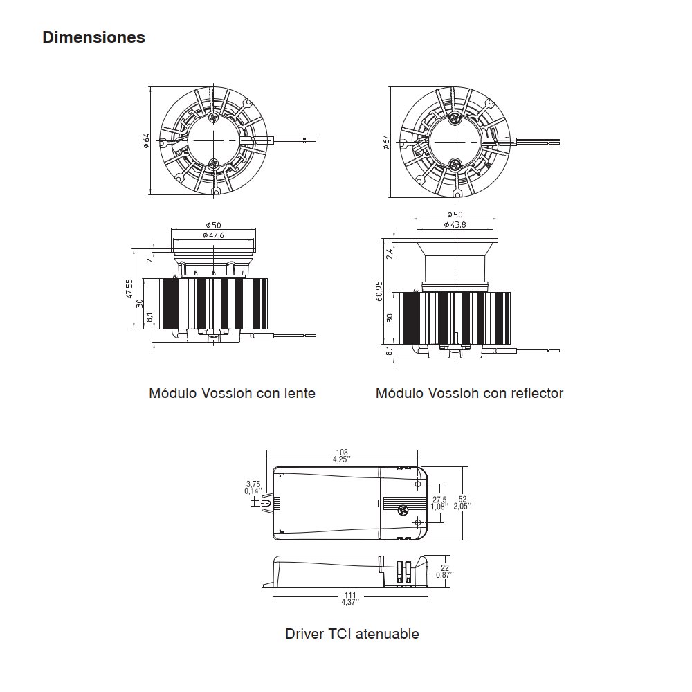 Vossloh Schwabe – 3000K – 1300 lúmenes – 120-240V Dimeable 0-10V – 5 años de garantía
