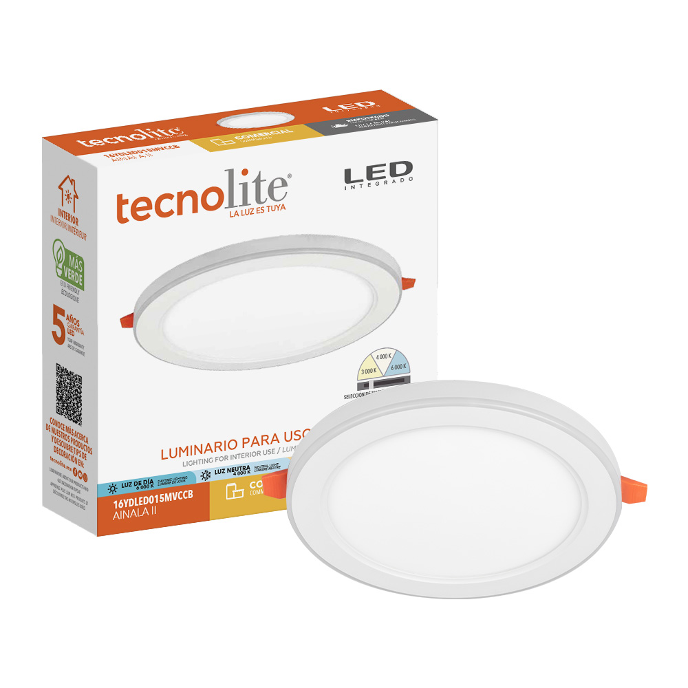 Tecnolite 16YDLED015MVCCB – 3000K/4000K/6000K – 960 lúmenes – 100-240V