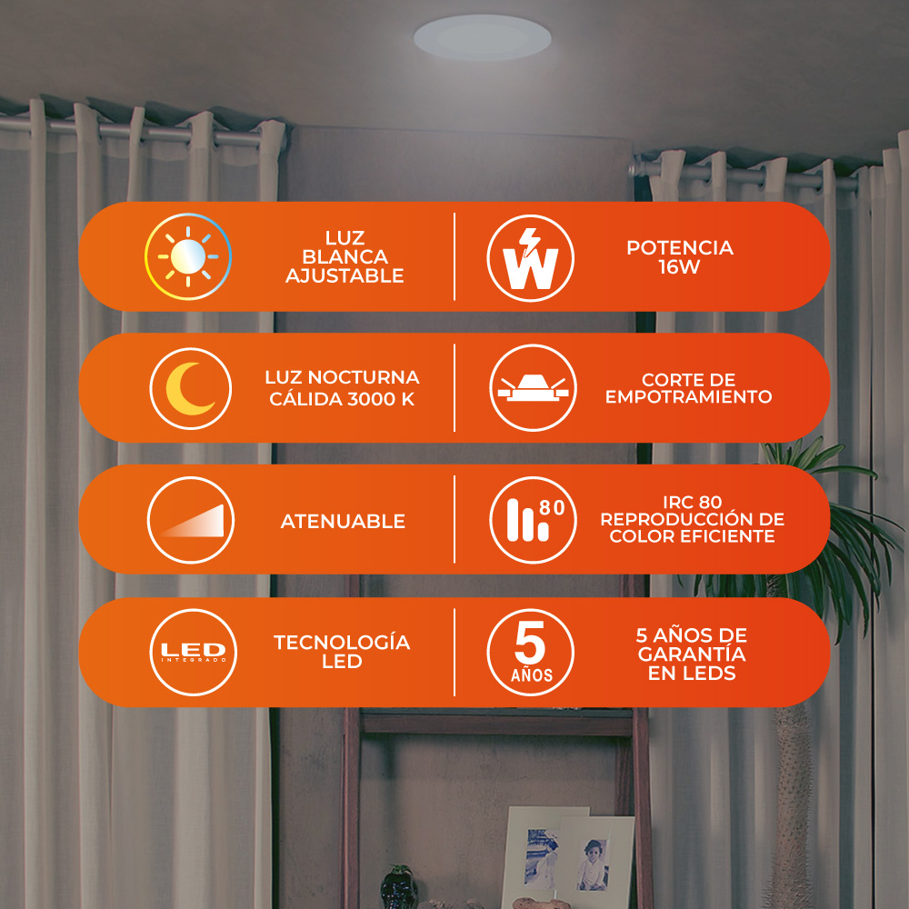 Ojo de buey empotrable LED – 16W – Acabado blanco – Kelvin seleccionable