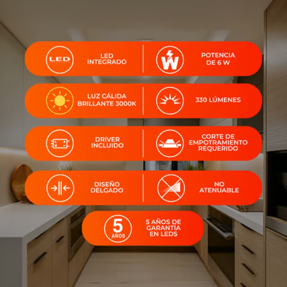 - Temperatura de color: 3000K
