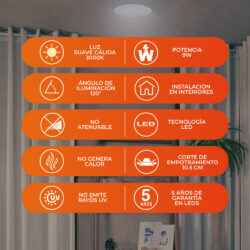 Ojo de buey empotrable LED – 9W – Acabado blanco – Luz cálida