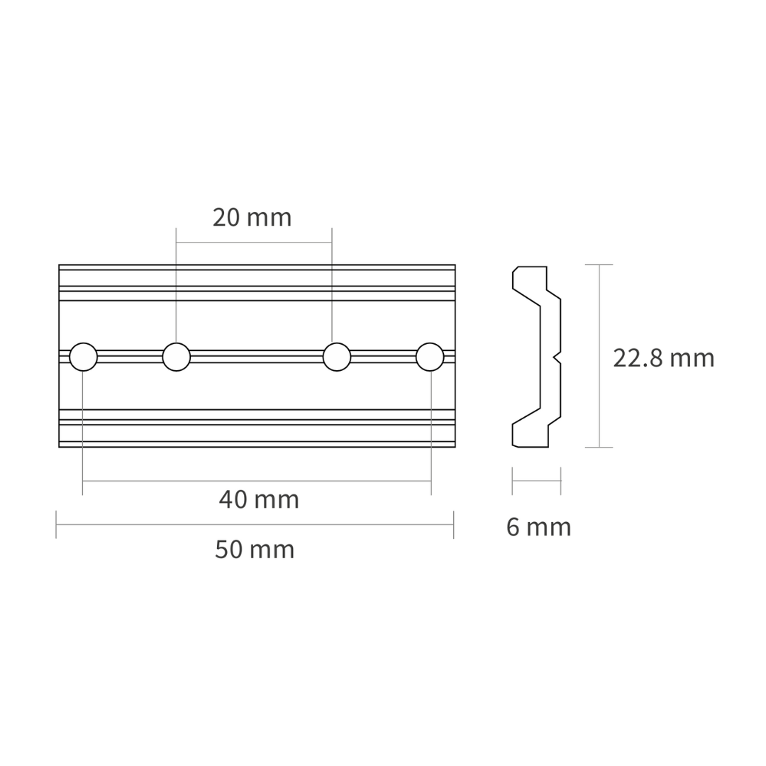 - Interconecta rieles de manera mecánica