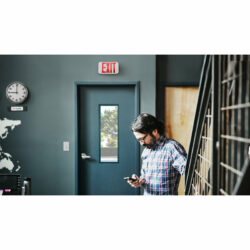 - Rotulo de salida de emergencia en Español, con opción de cambiar el color del rótulo entre rojo y verde mediante un switch al momento de la instalación.