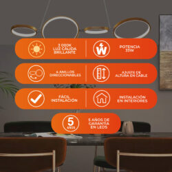 Lámpara de suspender AUREAL – 33W – Acabado dorado – Luz cálida