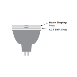 El sistema Snap System de Soraa es un sistema magnético para utilizarse en bombillos GU10 de 10° narrow spot. El lente y el bombillo quedan asegurados por medio de atracción magnética entre ambos.