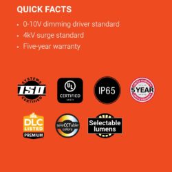 - Certificada UL, DLC, IP65, ISO