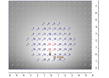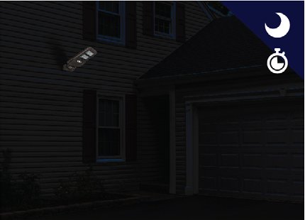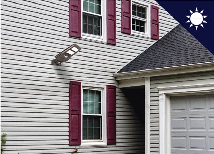 Enciende toda la noche al 12% de su capacidad | De día se apaga | Ejemplo de aplicación Montaje a 3.5m de alto, inclinación de 45°. Cobertura aproximada 6m x 6m |