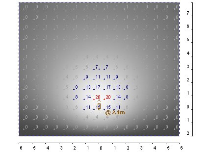 Si no hay ocupación enciende al 8% de su capacidad | El sensor detecta ocupación, incrementa la intensidad al 30% de su capacidad | Ejemplo de aplicación Montaje a 2.4m de alto, inclinación de 45°. Cobertura aproximada 4m x 4m |