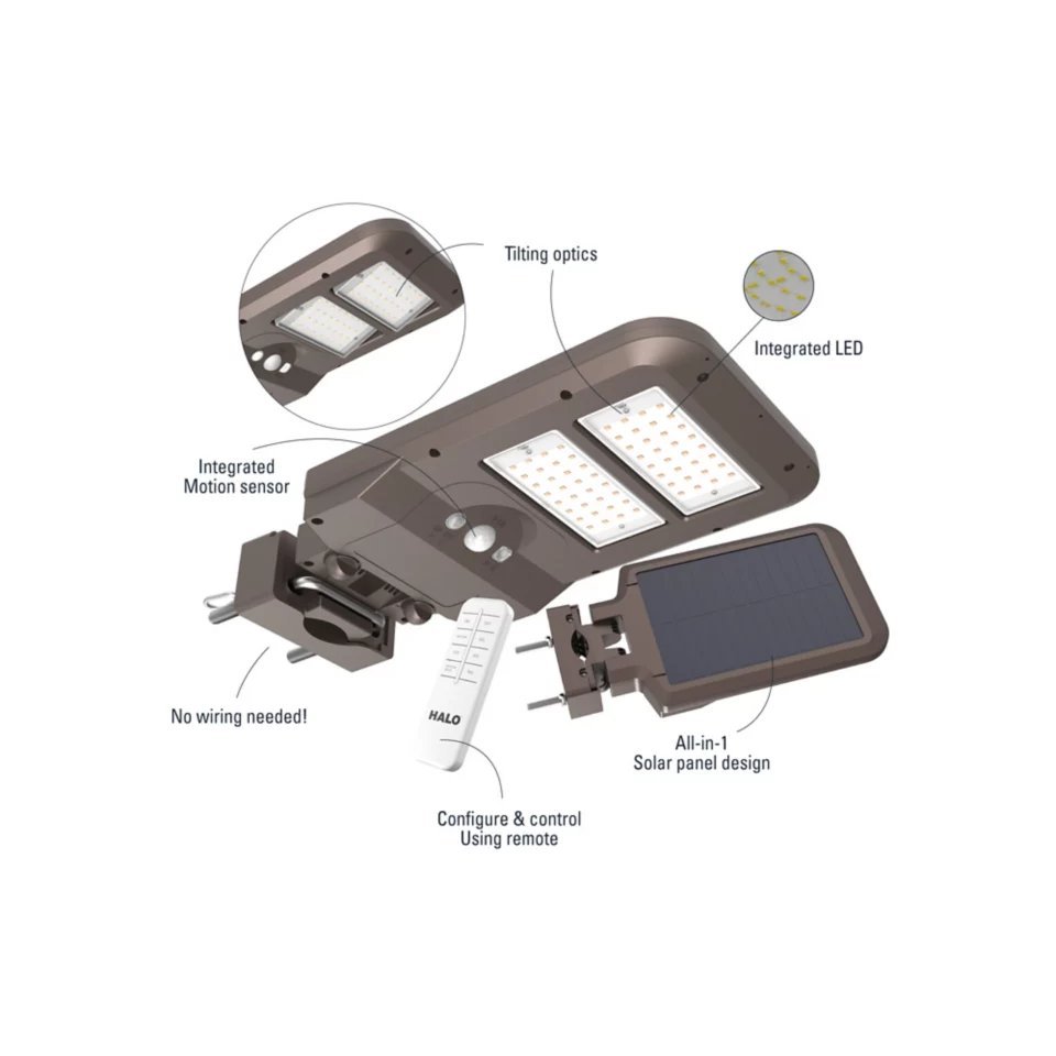 Lámpara solar tipo reflector todo en uno, aporta seguridad en su hogar o negocio, con iluminación brillante, duradera y resistente a cualquier clima.